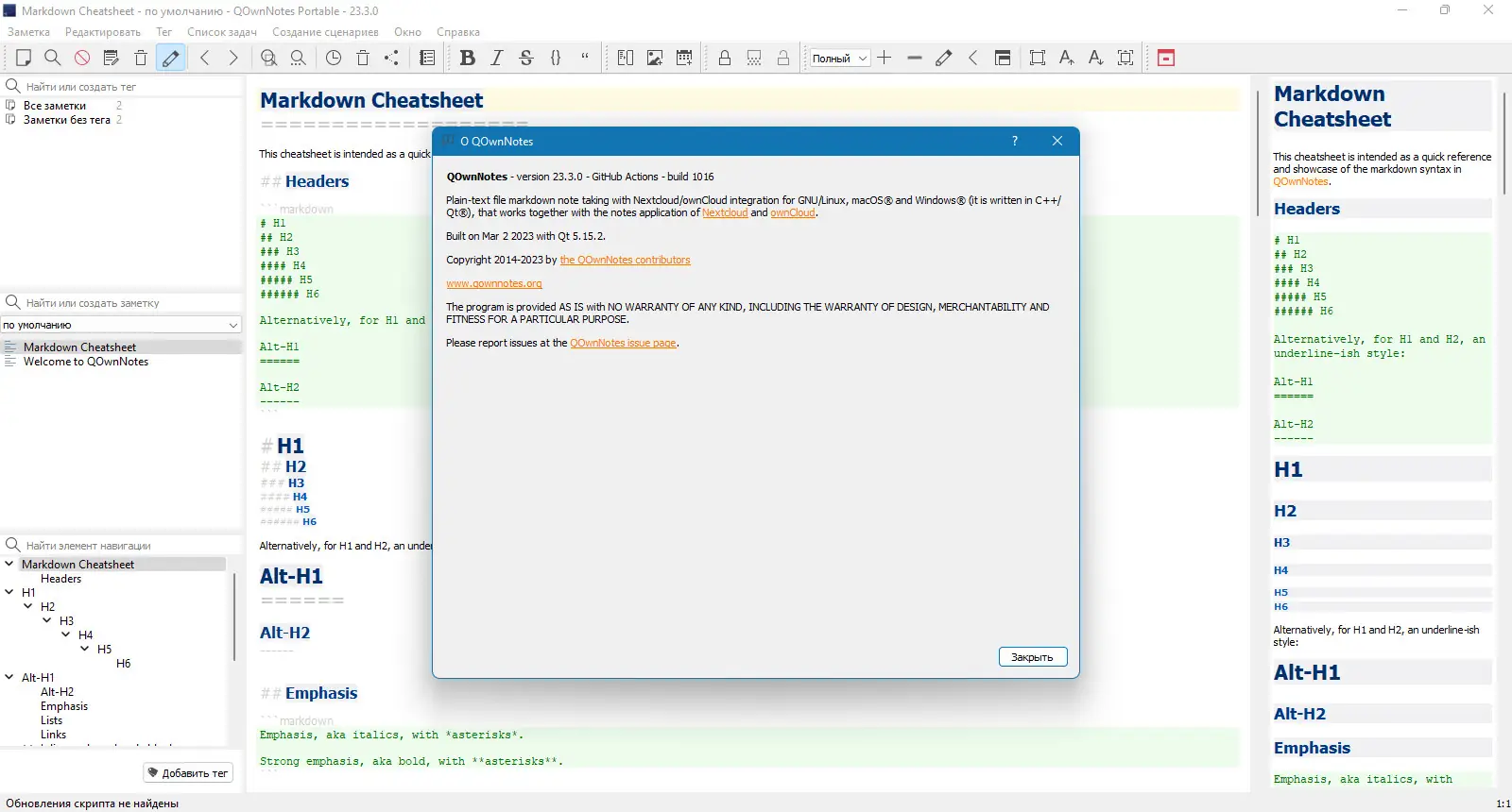 - Скачать файл QOwnNotesPortable.bat и запустить его для запуска программы без установки.