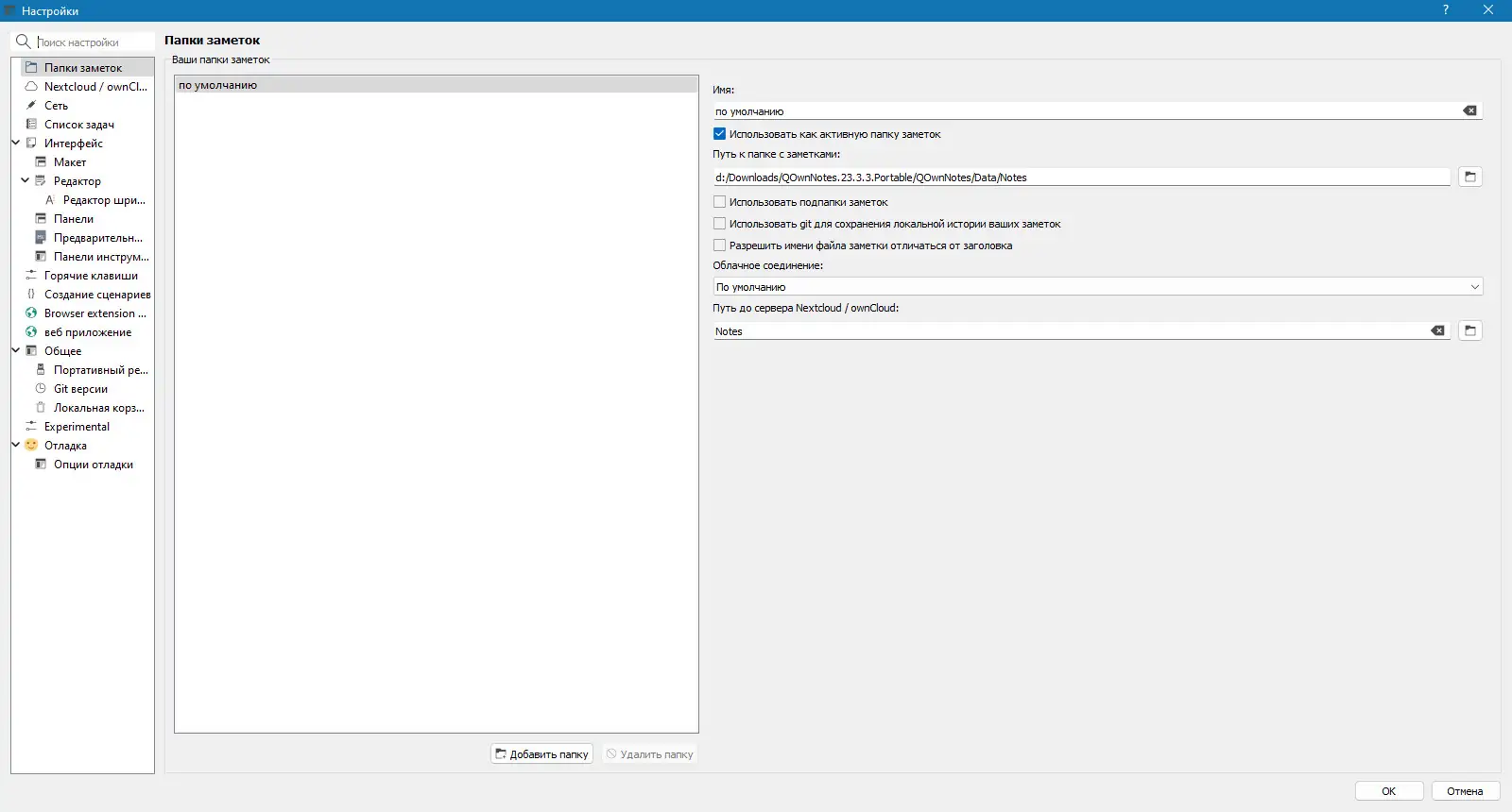 Обратите внимание: при использовании портативной версии все настройки и заметки сохраняются в выбранной папке, что облегчает перенос данных и работу на разных устройствах.