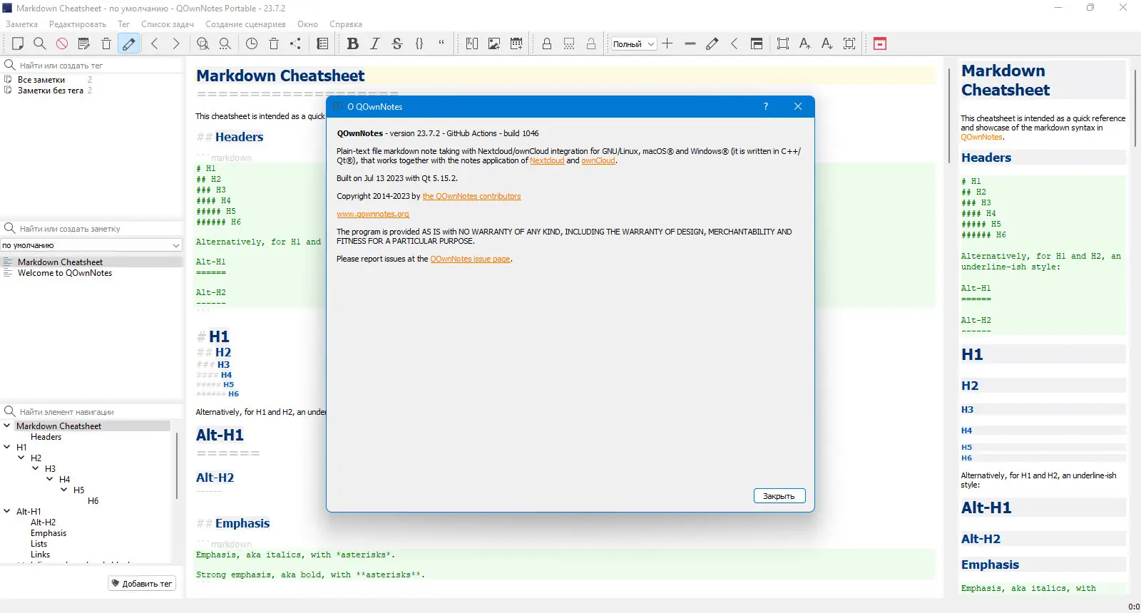 QOwnNotes представляет собой бесплатное приложение с открытым исходным кодом, которое не требует инсталляции в систему и может использоваться как портативное решение. Записи хранятся в простых текстовых файлах и поддерживают форматирование с помощью Markdown, что делает их легко редактируемыми и совместимыми с различными платформами. Возможности синхронизации с облачными сервисами, такими как ownCloud, Nextcloud или Dropbox, обеспечивают доступ к заметкам с любого устройства, будь то компьютер или мобильное приложение. Кроме того, программа обладает широкими настройками интерфейса, поддержкой тегов, иерархическим структурированием заметок, Vim-режимом и поддержкой скриптов для расширения функциональности.