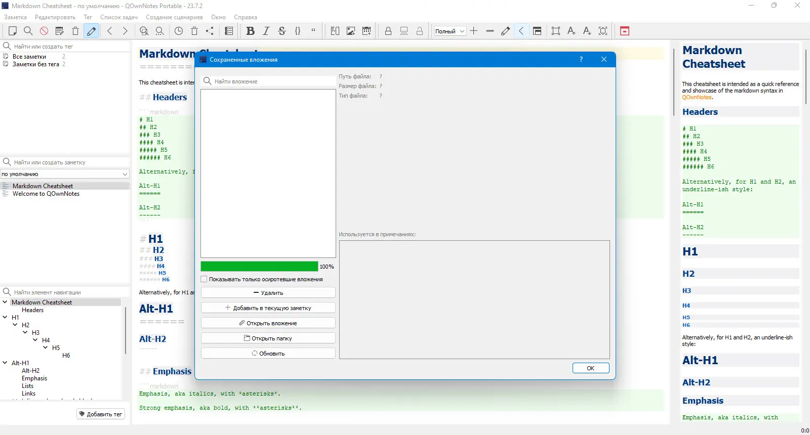 - Запустите файл QOwnNotesPortable.bat для старта программы.