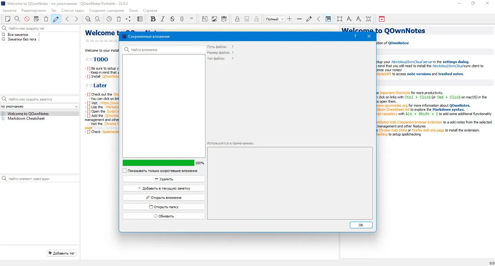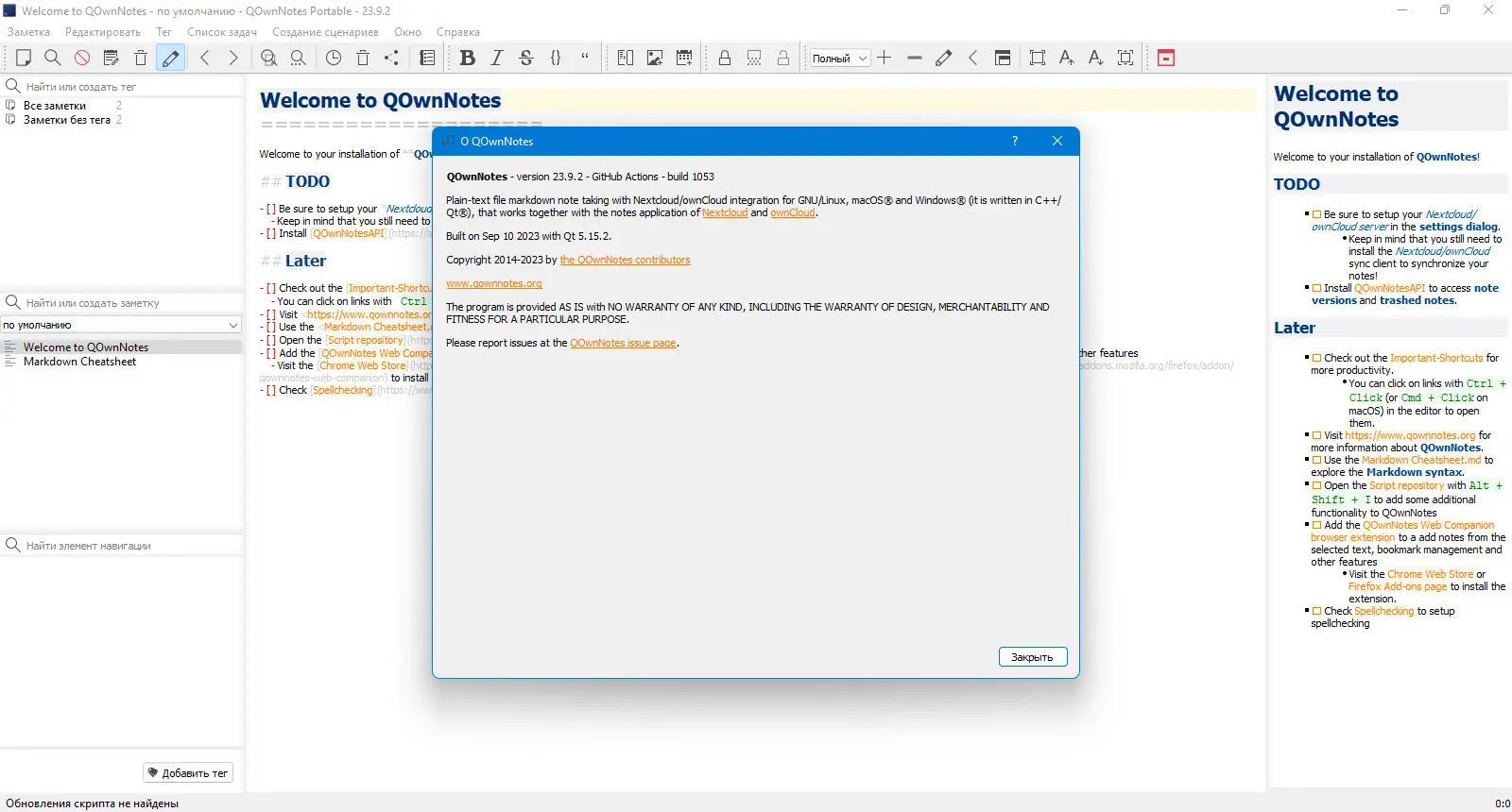 - Запустите файл QOwnNotesPortable.bat для начала работы.