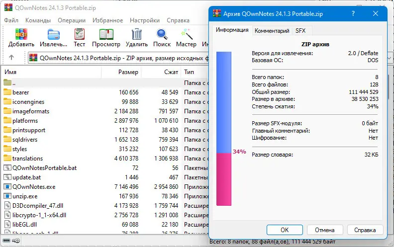 Для использования портативной версии QOwnNotes достаточно скачать архив, распаковать его и запустить файл через командный файл.