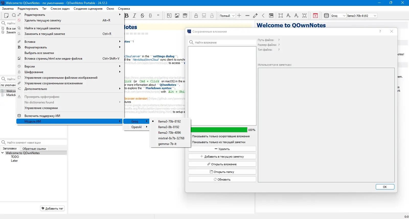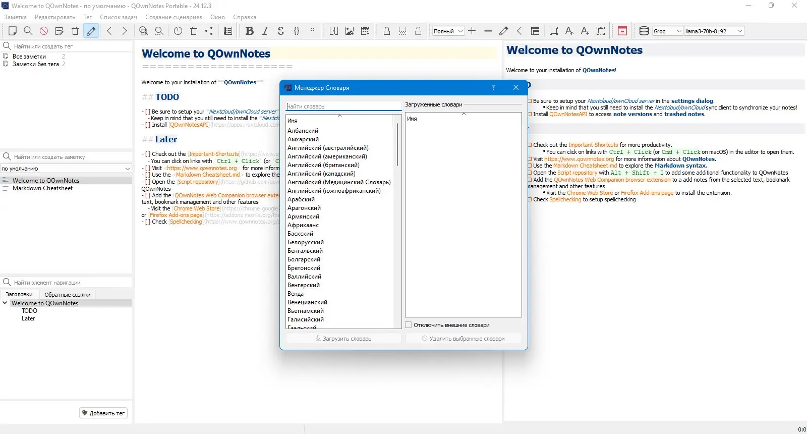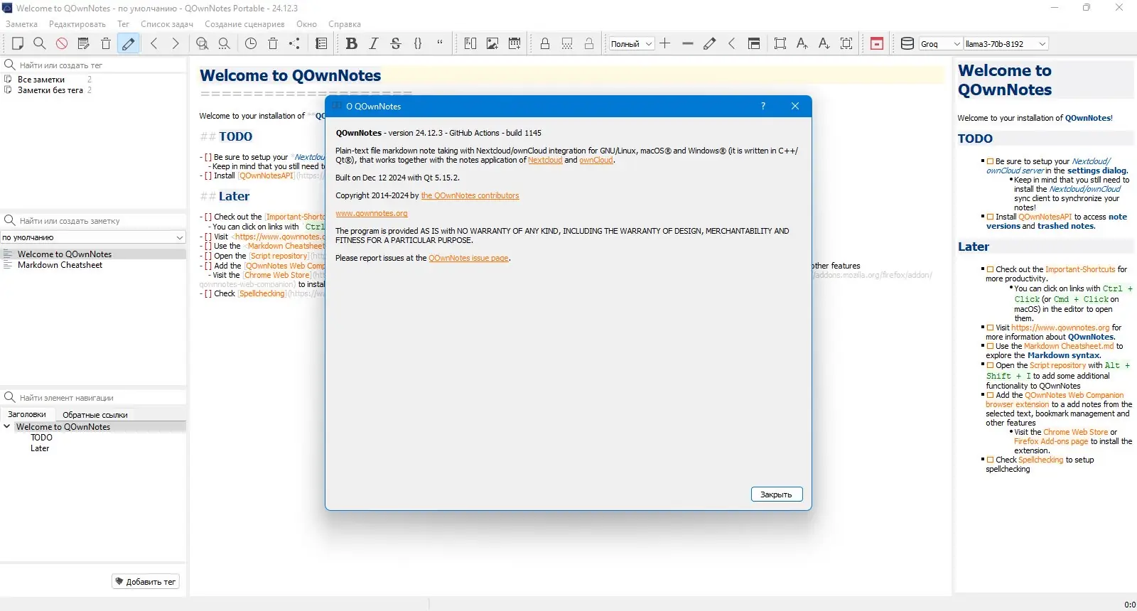 - Запустите файл QOwnNotesPortable.bat для начала работы без установки.