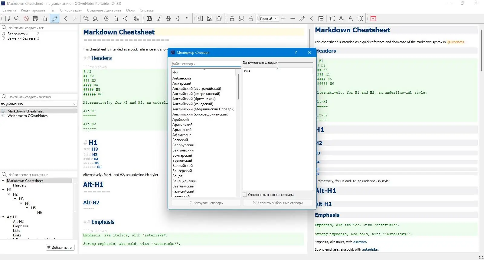 QownNotes представляет собой универсальный инструмент для ведения заметок, созданный с учетом современных требований к эффективности и удобству. Записи хранятся в простых текстовых файлах с поддержкой Markdown, что обеспечивает легкое форматирование и переносимость данных. Программа позволяет быстро сортировать заметки, искать их по ключевым словам, пользоваться навигатором по заголовкам и поддерживает создание и использование тегов, включая их иерархическую структуру. Для повышения продуктивности можно включить Vim-режим и использовать поддержку скриптов, а темная тема оформления создаст комфортные условия для работы в темное время суток. QownNotes также совместим с платформой Evernote, что делает её универсальным инструментом для различных сценариев использования.