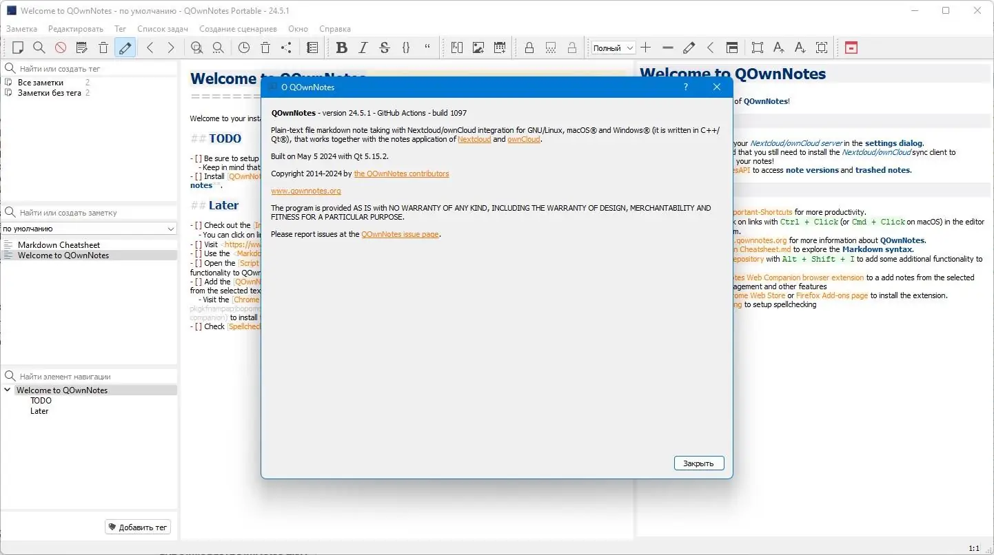 Программа распространяется бесплатно, имеет открытый код и подходит для использования как на Windows 7, так и на более современных Windows 8/8.1, 10 и 11. Благодаря портативной версии вы можете запускать QOwnNotes без установки, прямо с флешки или другого носителя.