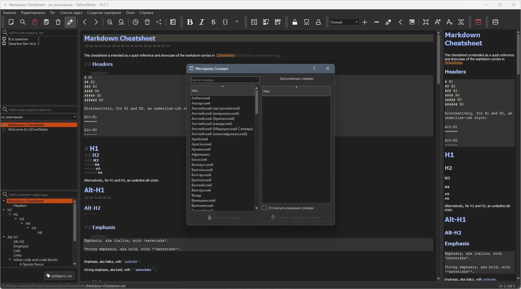 QOwnNotes — это мощный менеджер заметок, созданный для эффективной организации ваших записей с помощью простого текстового формата и расширенных возможностей синхронизации.