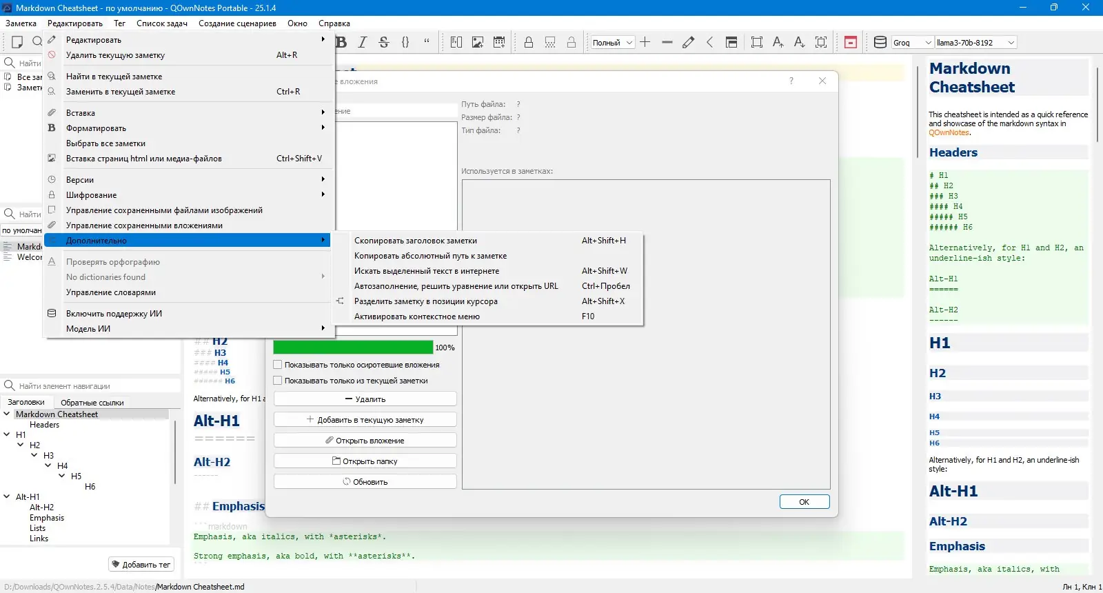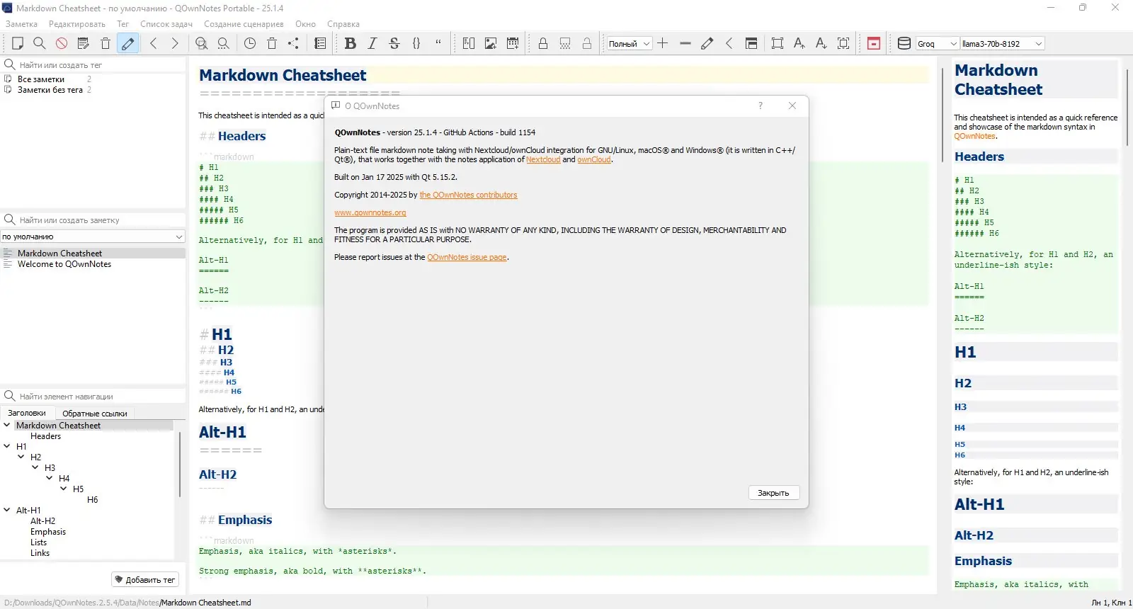- Запустите файл QOwnNotesPortable.bat для начала работы.