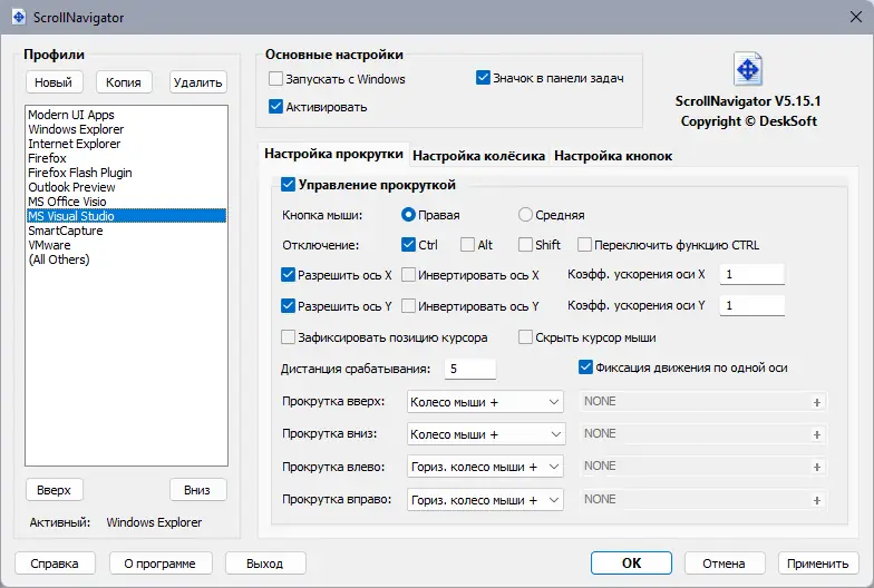 ScrollNavigator — универсальный инструмент, который значительно упрощает работу с документами и окнами с полосами прокрутки. Зажмите правую кнопку мыши в любом месте страницы и протяните курсор в нужном направлении — это позволит вам перемещаться по содержимому не только по вертикали, но и по горизонтали. Такой способ прокрутки исключает необходимость точного позиционирования курсора на полосостях, особенно удобно при работе с большими таблицами и графиками. Кроме того, программа добавляет функцию динамического ускорения к колесу мыши, делая прокрутку более точной при медленном движении и ускоряя ее при быстром вращении дройка. Это помогает повысить эффективность и комфорт в процессе работы с различными приложениями и окнами, которые используют стандартные полосы прокрутки.
