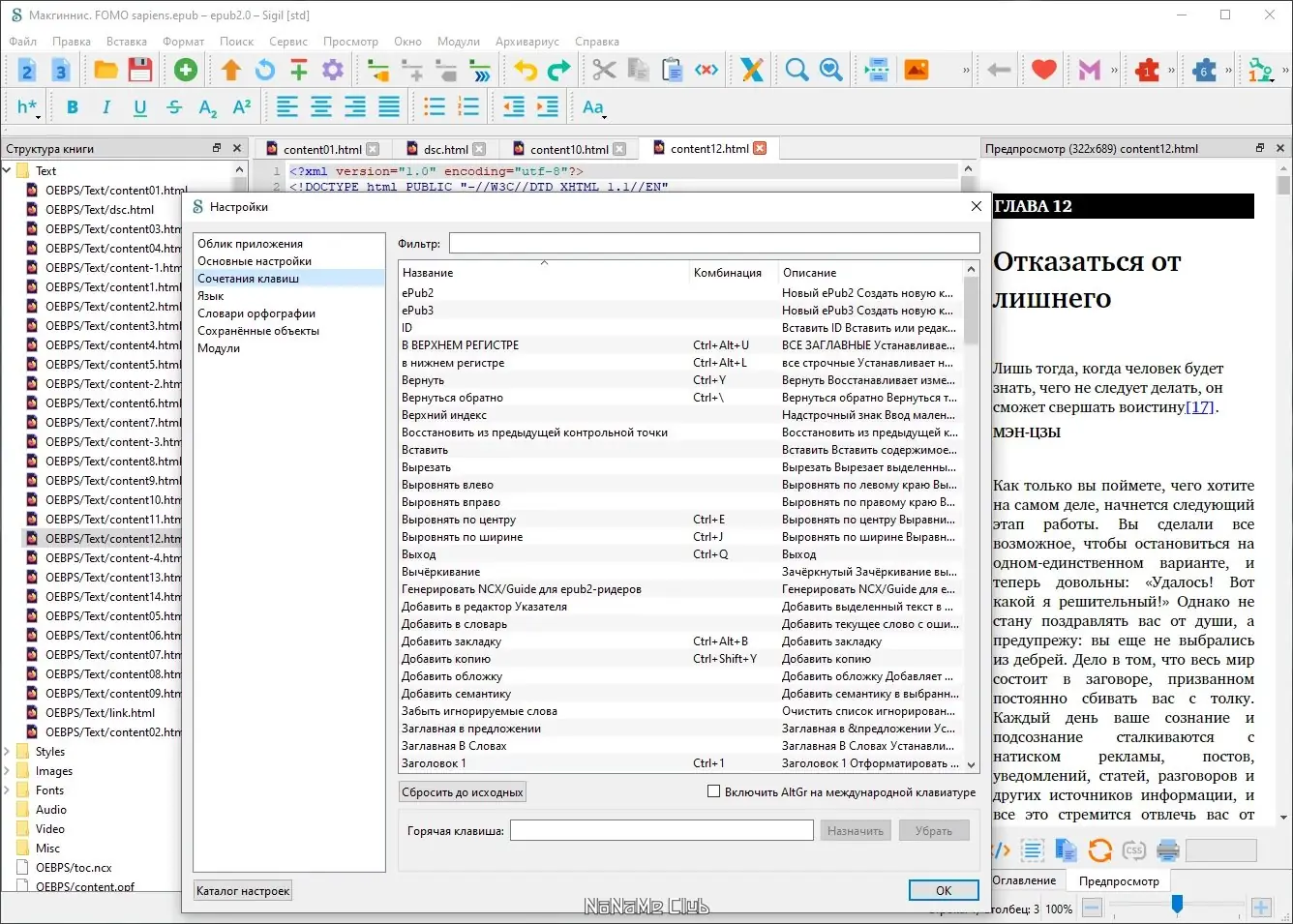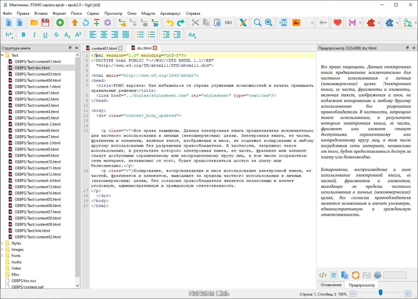 Sigil — мощный редактор электронных книг в формате EPUB, позволяющий создавать и редактировать книги с собственным дизайном и содержимым. Обладает широкими возможностями настройки и поддержкой различных форматов.