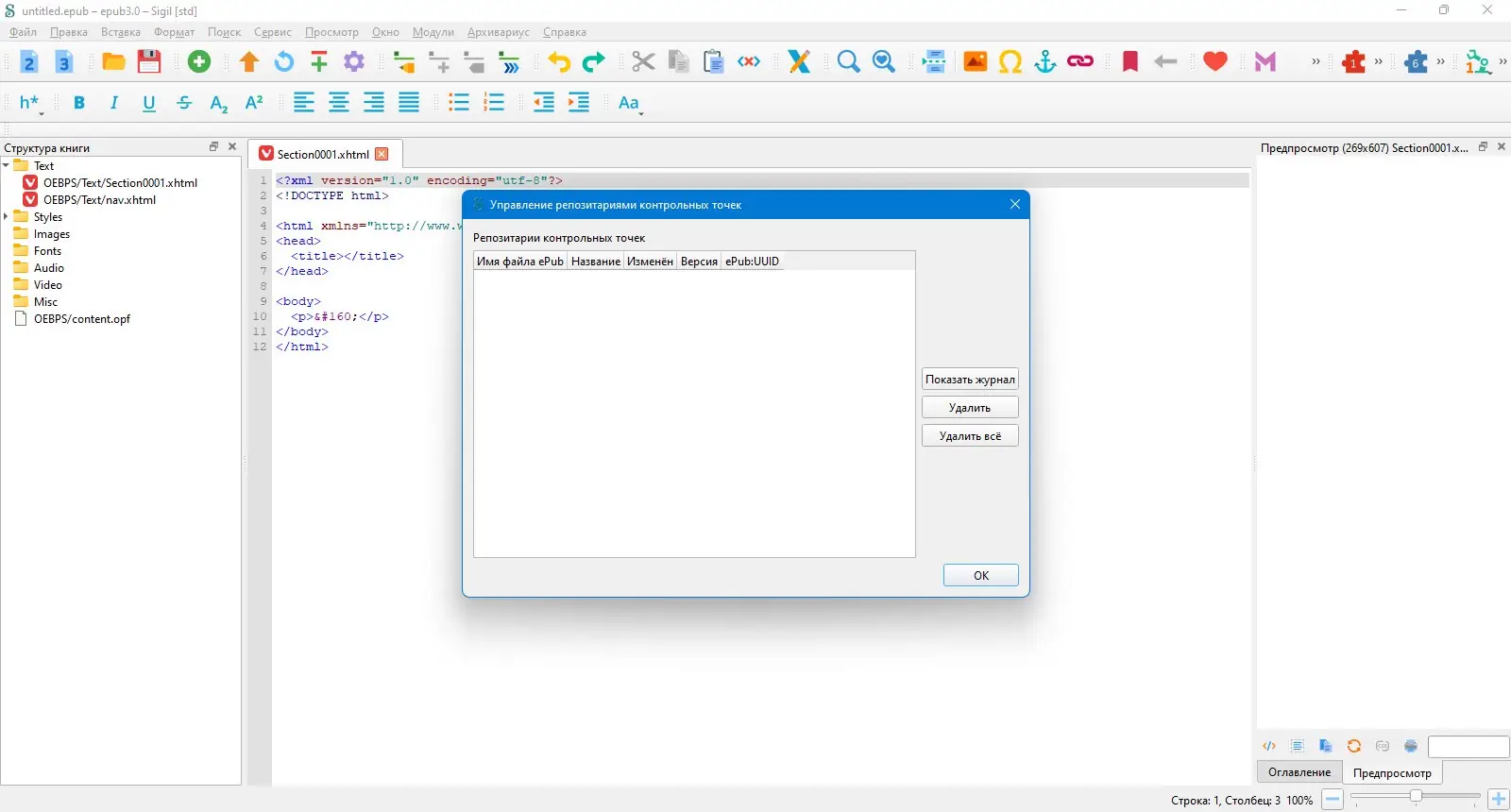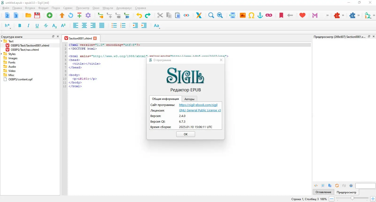 Sigil — мощный редактор электронных книг в формате EPUB, позволяющий создавать и редактировать книги с индивидуальным дизайном и структурой. Обладает широким набором функций для работы с гипертекстовыми документами, мультимедийными файлами и метаданными, делая процесс подготовки электронных публикаций максимально гибким и удобным.