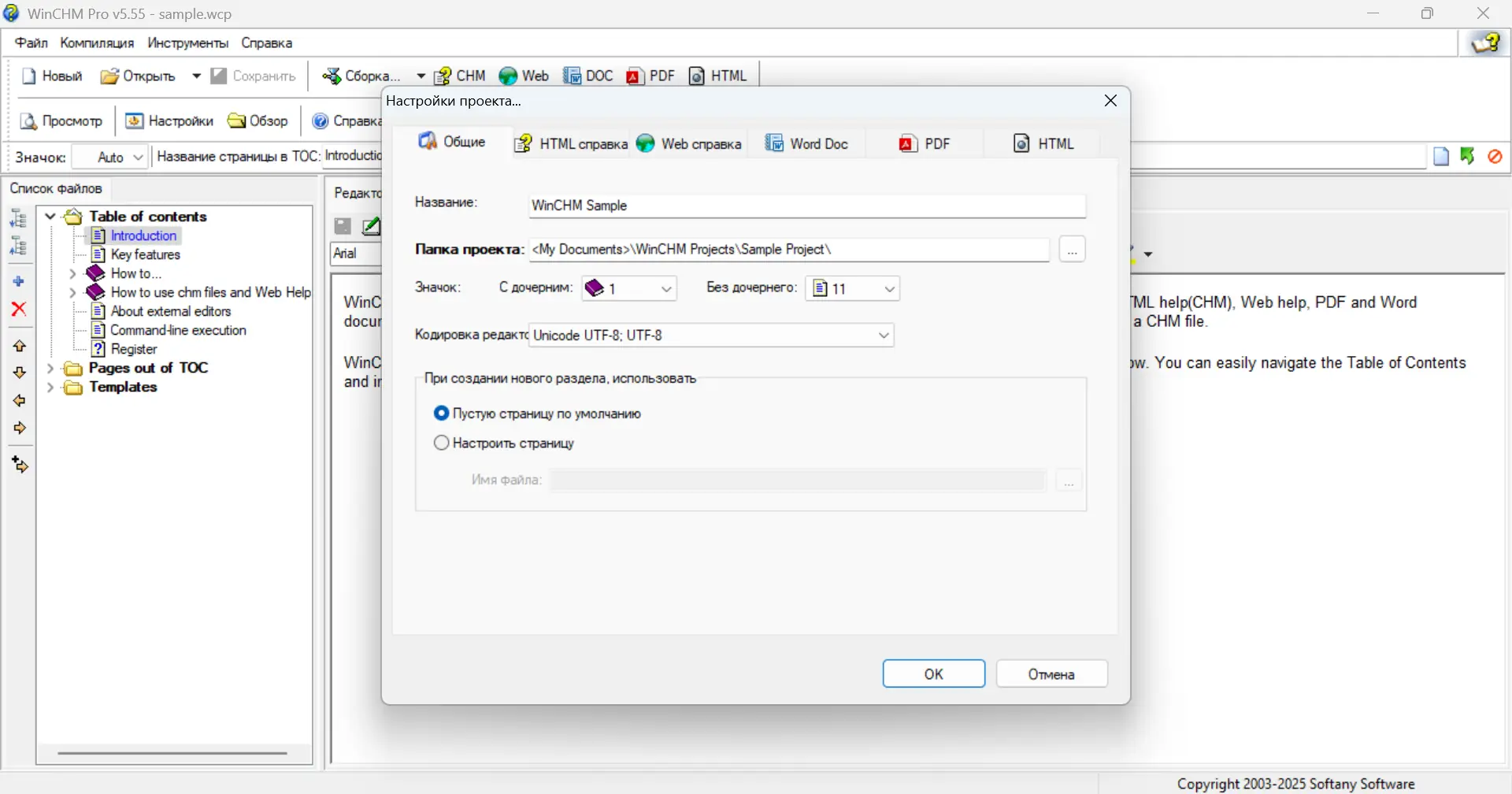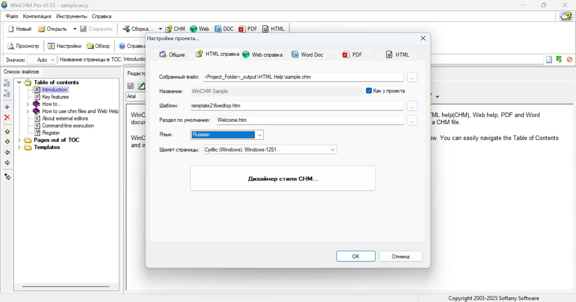 - Возможность редактировать и преобразовывать сторонние CHM файлы