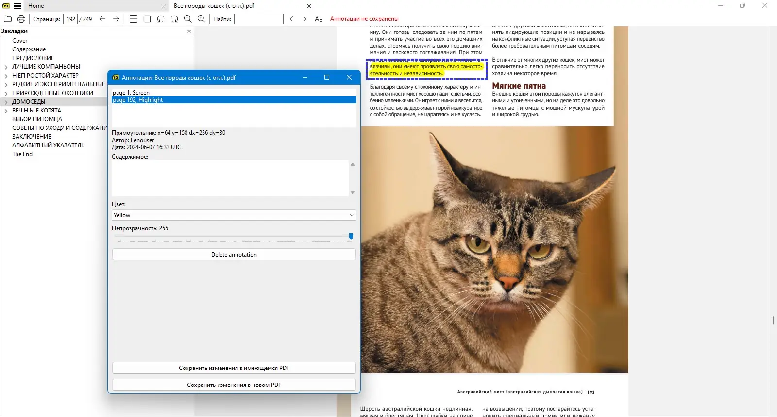 - Нет поддержки некоторых специальных функций в PDF, например, аннотаций, за исключением гиперссылок.