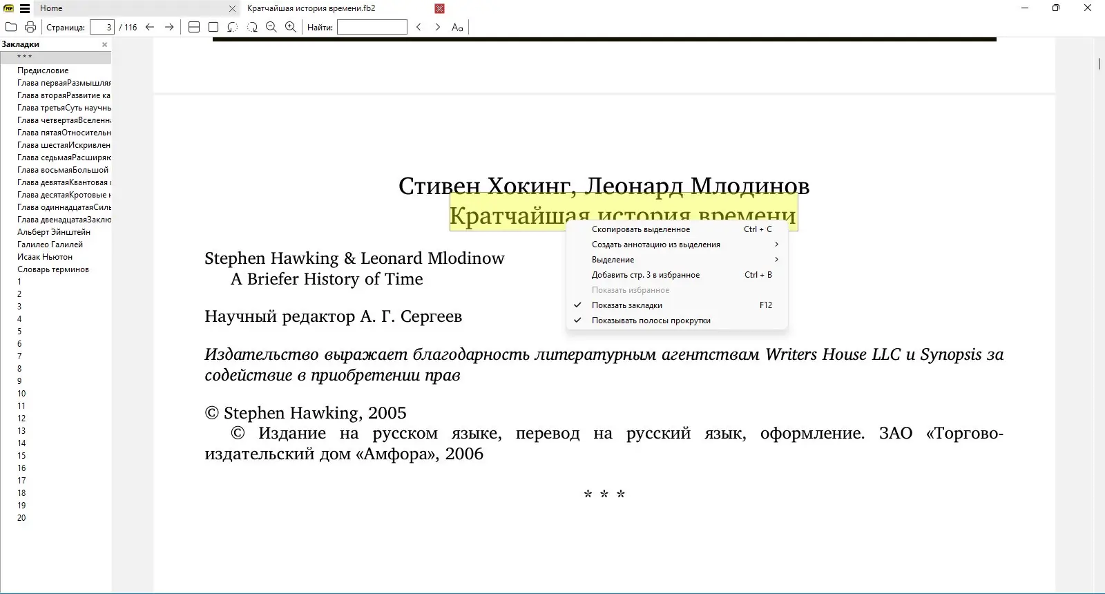 - Поддержка форматов PDF, DjVu, FB2, ePub, MOBI, CHM, XPS, CBR/CBZ.