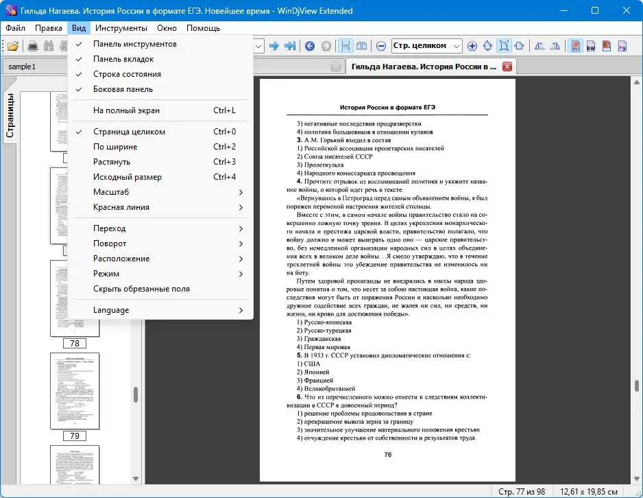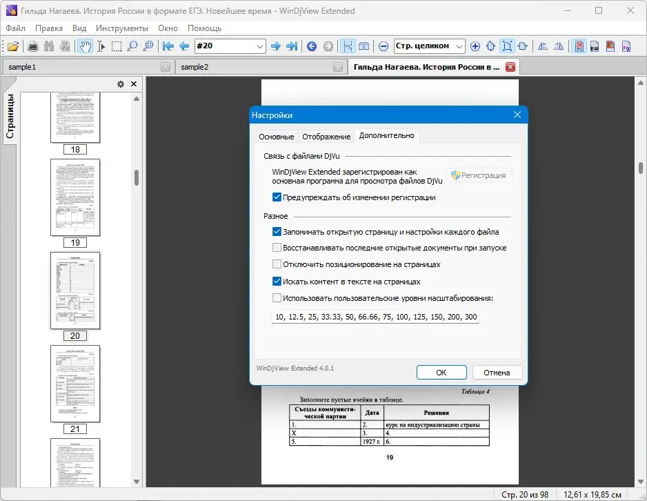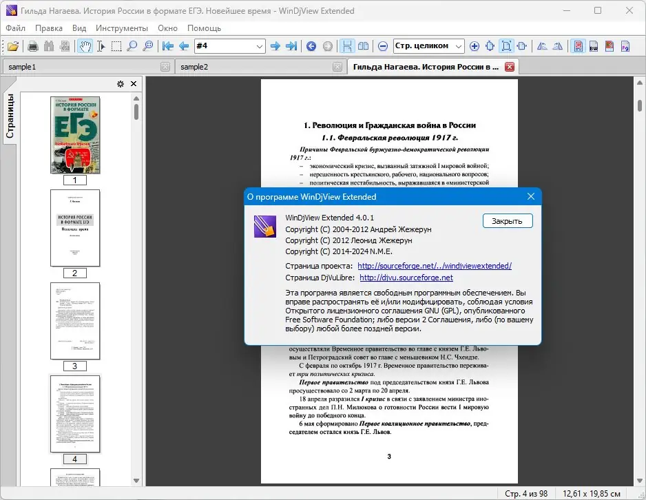- Навигация с помощью мыши и клавиатуры, ассоциация с файлами DjVu.