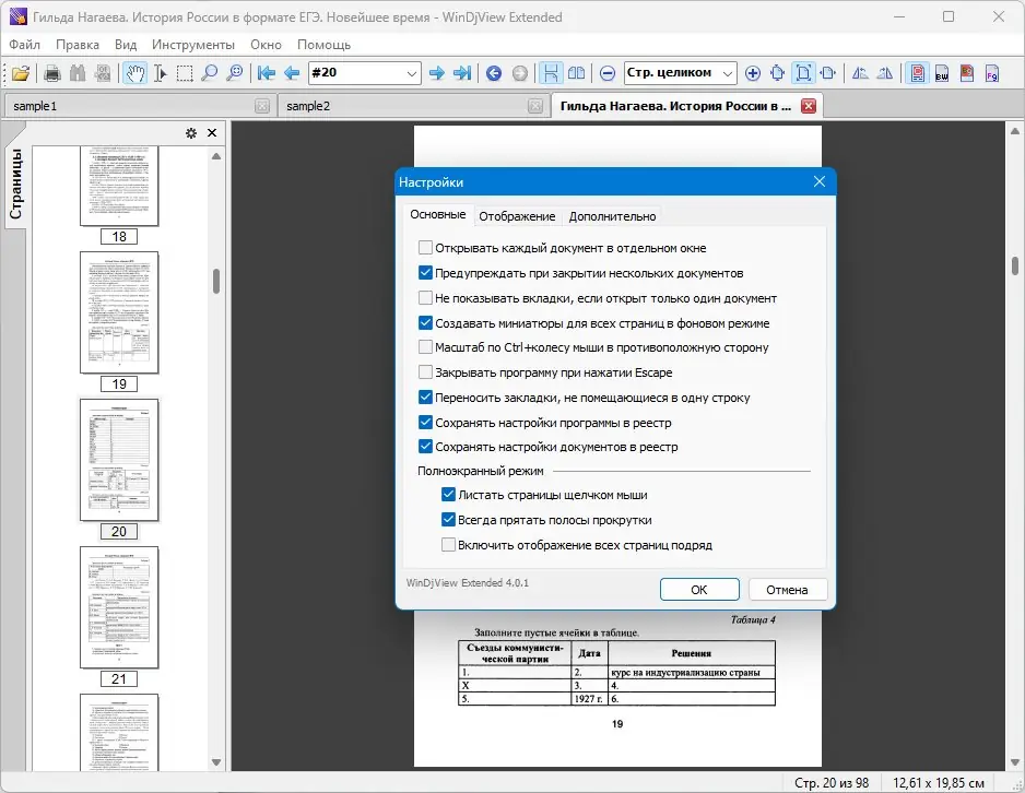 - Поддержка непрерывного и одностраничного режимов просмотра с отображением разворота.