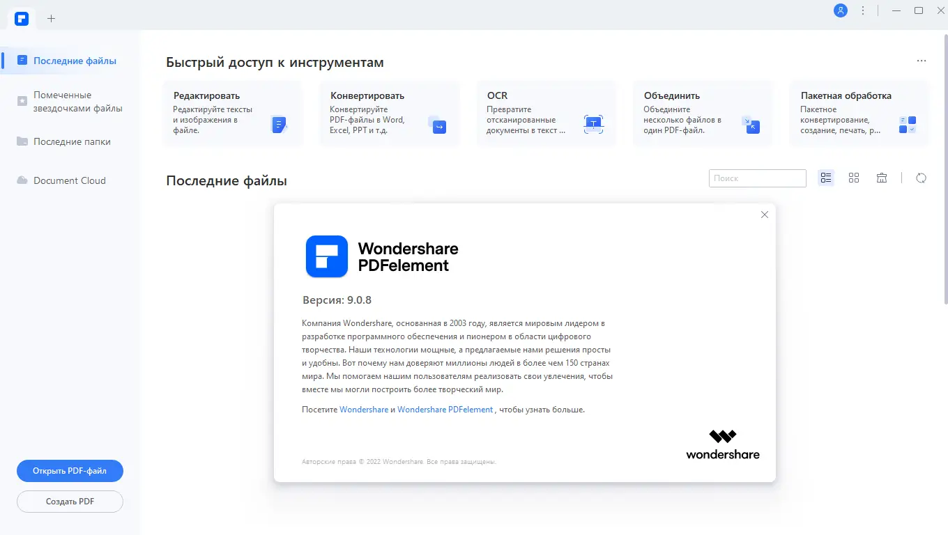 Wondershare PDFelement — это мощное решение для работы с файлами формата PDF, объединяющее в себе все необходимые инструменты для редактирования, конвертирования, защиты и организации документов. Благодаря поддержке технологии OCR программа легко преобразует отсканированные материалы в редактируемый и полнофункциональный документ, позволяя менять текст, шрифты, добавлять изображения и аннотации. Встроенные функции позволяют создавать формы, нумеровать страницы, объединять файлы и добавлять цифровые подписи, обеспечивая полный контроль над вашими PDF-файлами. Удобный мультиформатный режим преобразования обеспечивает экспорт документов в Word, Excel, графические форматы и другие. Программа широко используется как юридическими, так и бизнес-пользователями для безопасной и эффективной работы с конфиденциальными данными.