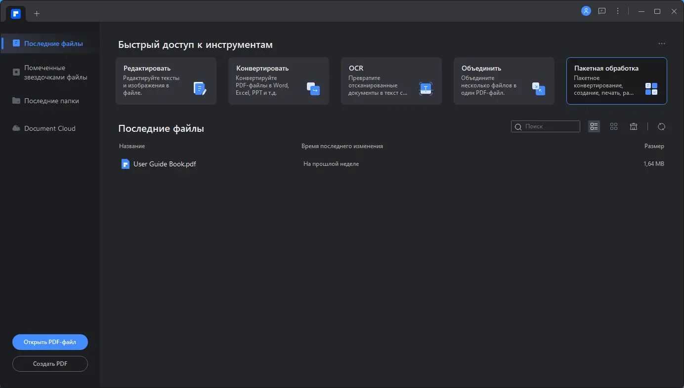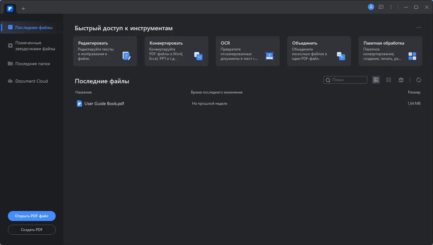 Wondershare PDFelement — универсальная программа для редактирования и управления документами формата PDF. Это все-в-одном инструмент, который позволяет быстро и удобно изменять текст и шрифты, вставлять изображения, добавлять формы, нумеровать страницы и защищать файлы паролем. Встроена технология OCR, которая позволяет преобразовывать отсканированные материалы в редактируемый документ, поддерживающий поиск и форматирование. Также есть возможность объединять несколько файлов в один и конвертировать PDF в форматы Word, Excel и графические файлы, что значительно облегчает дальнейшую работу с документами.