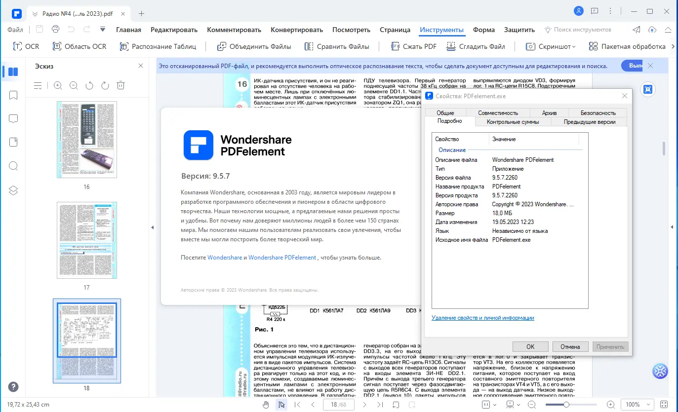 Wondershare PDFelement — это универсальный инструмент для работы с файлами формата PDF. Он позволяет легко вносить изменения в текст и шрифты, добавлять изображения и формы, объединять несколько документов и защищать их паролем. Благодаря технологии OCR программа способна распознавать текст на отсканированных документах, делая их полностью редактируемыми и поисковыми. Также есть возможность конвертировать PDF в различные форматы, такие как Word, Excel и графические файлы. Передовые функции позволяют создавать подписи, нумеровать страницы, добавлять аннотации и управлять безопасностью файлов, обеспечивая надежную защиту конфиденциальной информации.
