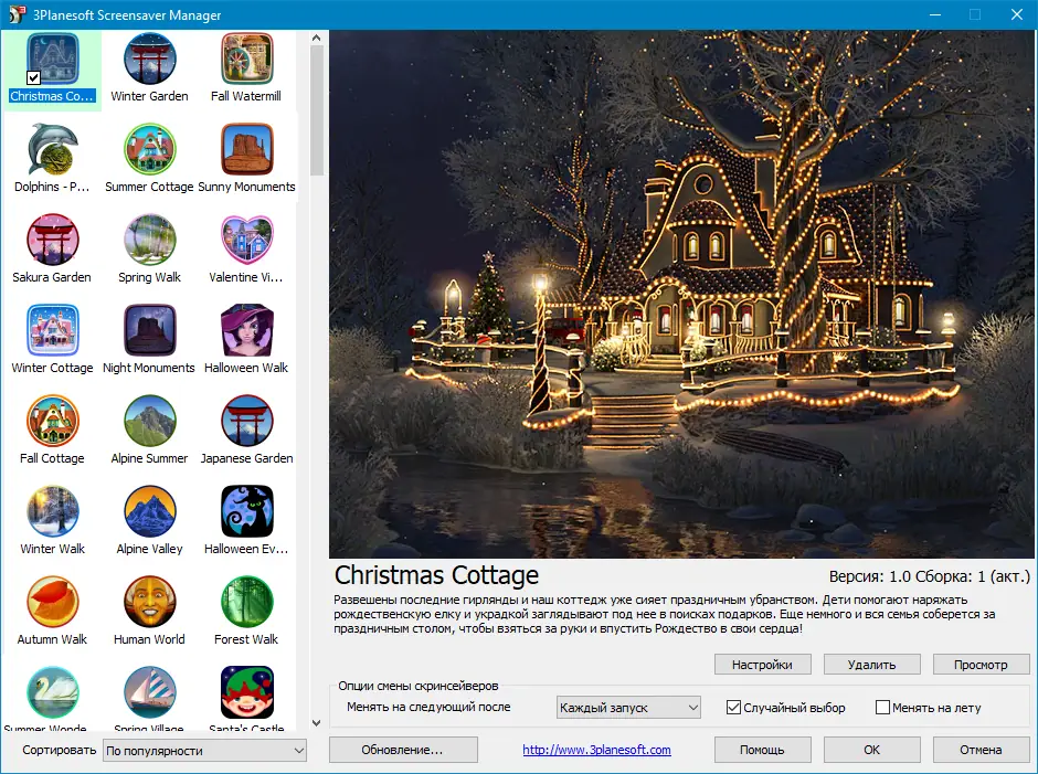 - Наличие встроенного менеджера скринсейверов и возможность обновления коллекции.
