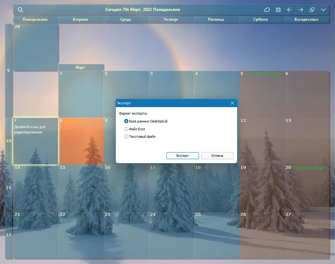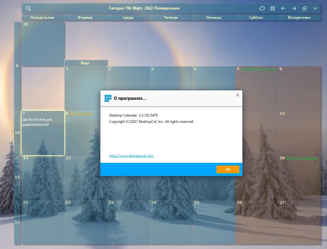 Desktop Calendar – бесплатный календарь и органайзер для операционных систем Windows, предлагающий удобное управление датами, событиями и задачами прямо на рабочем столе.