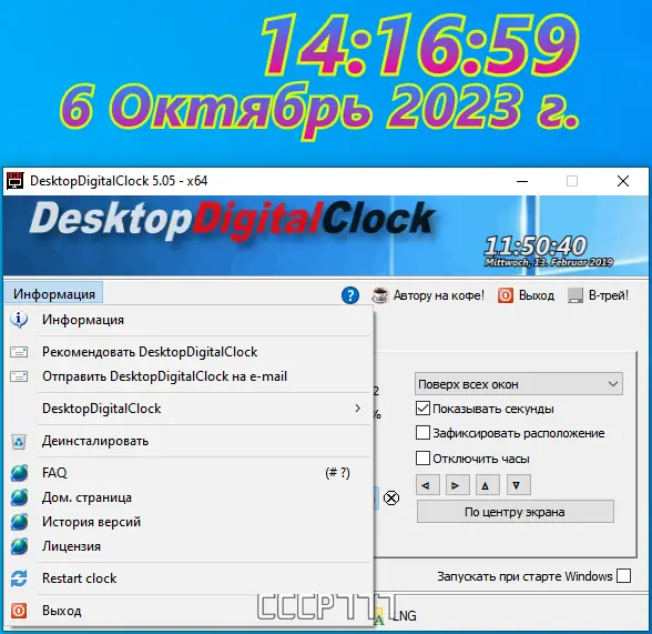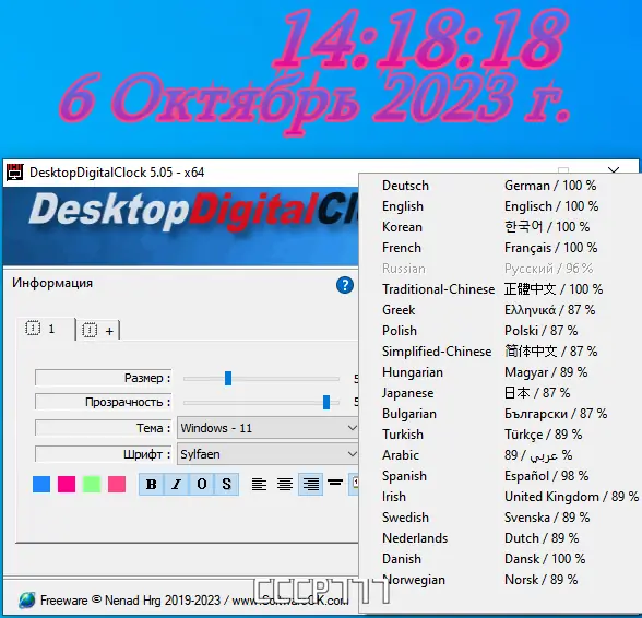 - Для перехода на нужный язык убедитесь, что файл DesktopDigitalClock.ini находится в рабочей папке или в папке %APPDATA%/DesktopDigitalClock.