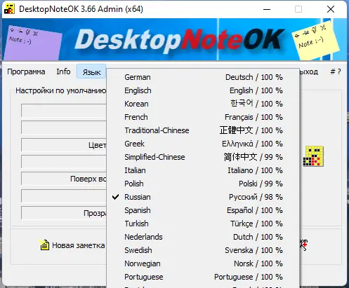 - Создайте или скопируйте файл DesktopNoteOK.ini в папку с программой.