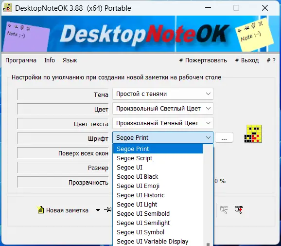 - Создать или скопировать файл DesktopNoteOK.ini в папку с программой для сохранения настроек.