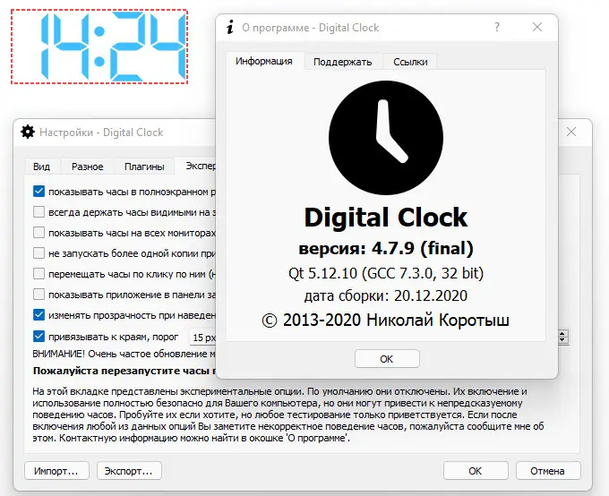 В целом, Digital Clock — это надежное решение для тех, кто ищет простое, но многофункциональное средство для отображения времени и дополнительной информации на рабочем столе.