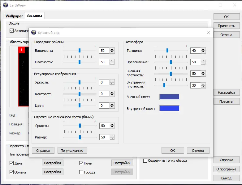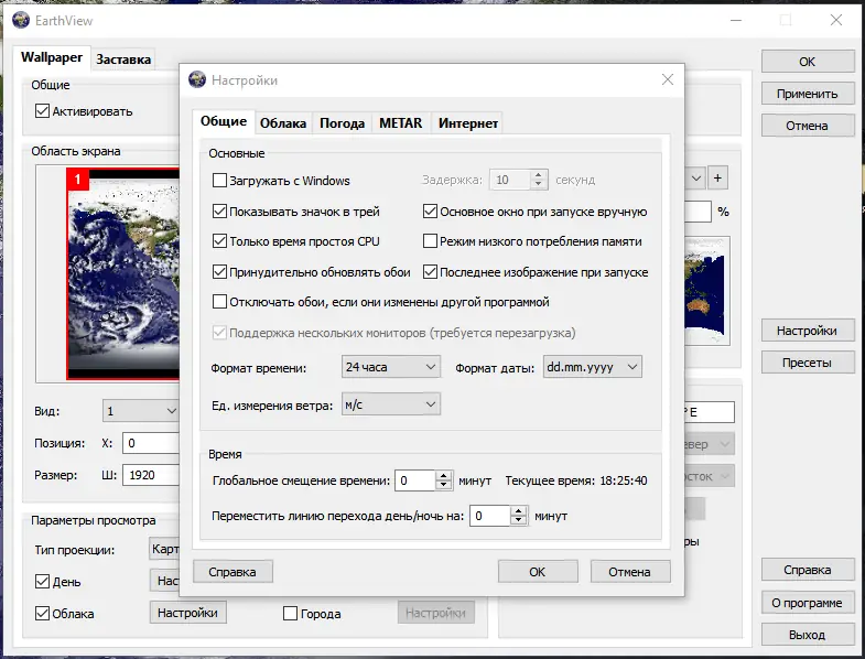EarthView представляет собой современное приложение, создающее красочные и детализированные изображения планеты в режиме реального времени. Оно отображает разнообразные виды карты и земного шара с сезонными изменениями, атмосферными эффектами, облаками, городскими огнями и информацией о текущей погоде. Благодаря поддержке различных карт, от общего глобуса до зон с городами и природой, пользователь получает возможность полностью настроить визуальные параметры под свои предпочтения. Программа подходит для использования как в виде обоев, так и в качестве экранных заставок, и поддерживает работу на нескольких мониторах, обеспечивая индивидуальные представления на каждом из них.