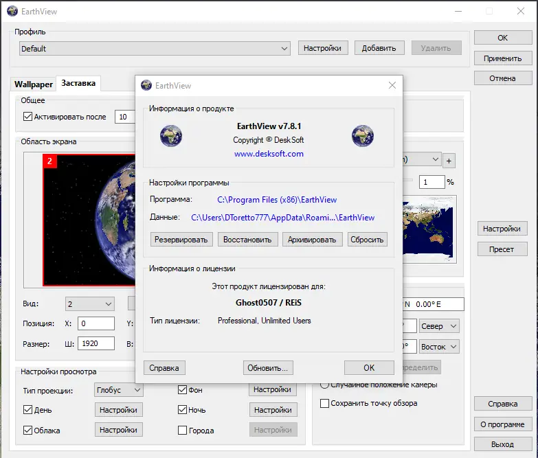 EarthView — это мощное решение для создания впечатляющих визуальных эффектов на рабочем столе и в качестве хранителя экрана. Оно отображает высокодетализированные виды нашей планеты с дневным светом, ночными тенями, атмосферными эффектами, облаками и даже актуальной погодой. Поддерживаются различные карты и проекции глобуса, что позволяет получить максимально качественное и реалистичное изображение. Благодаря многочисленным настройкам и обновляемым данным программа подходит для любителей высокотехнологичных обоев, предоставляя уникальные виды земли, сезонные изменения растительности, снегового и ледяного покрова. Кроме того, в полнофункциональной версии доступны более подробные карты и способы персонализации отображения.
