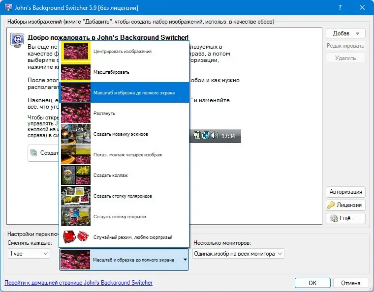 John’s Background Switcher — это бесплатная программа для автоматической смены обоев на вашем рабочем столе с разнообразными настройками и источниками изображений.