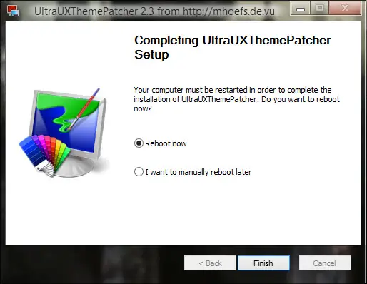 - Позволяет устанавливать потребные темы без ручных правок системных файлов.