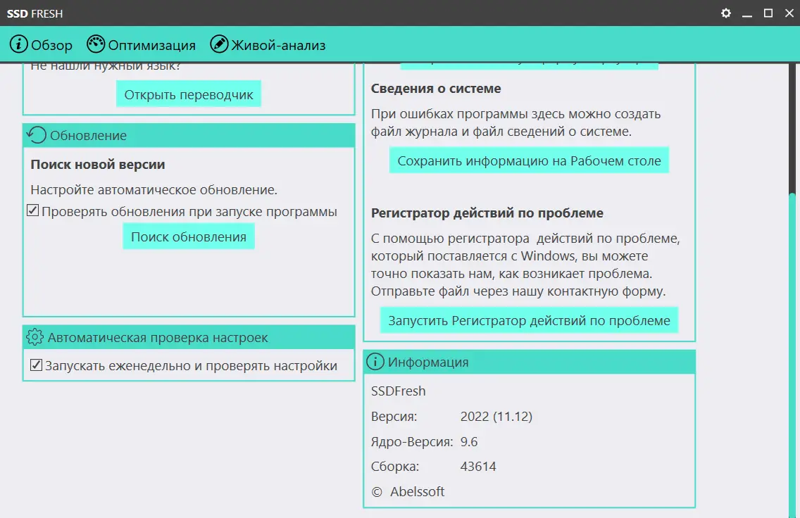 Abelssoft SSD Fresh — это удобная утилита для владельцев SSD дисков, которая поможет максимально использовать потенциал вашего накопителя. Программа автоматически настраивает систему Windows для работы с SSD, отключая ненужные операции, такие как дефрагментация и создание жестких журналов, что способствует снижению износа диска и увеличению его срока службы. Благодаря встроенной портативной версии, запуск и использование утилиты не требуют установки, что делает её особенно привлекательной для пользователей, предпочитающих переносные решения. Лечение проведено, программа полностью русифицирована и совместима с системами Windows 7, 8/8.1, 10 и 11 на x32 и x64 Bit.