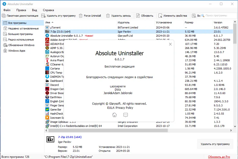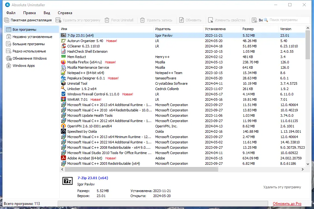 Absolute Uninstaller — мощная программа для полного удаления нежелательных приложений, превосходящая стандартные инструменты Windows. Она позволяет очистить систему от остатков удалённых программ и повысить производительность компьютера.