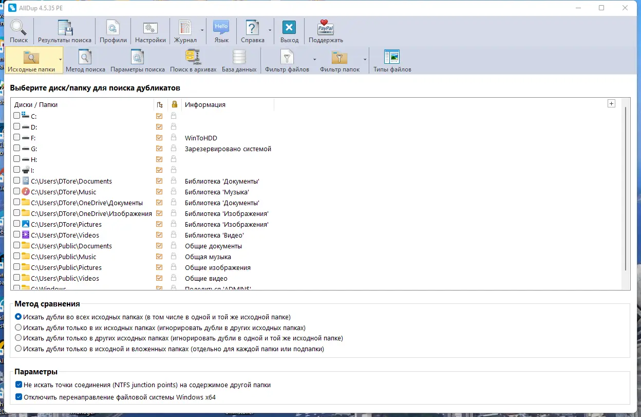 Данная программа поможет навести порядок на дисках, освободить дополнительное пространство и избавиться от ненужных копий. AllDup использует специально разработанный алгоритм, который ищет дубликаты по множеству критериев: имя файла, расширение, размер, содержимое, дата создания и изменения, а также атрибуты файла и его местоположение. После выявления копий пользователь может просмотреть их, открыть или сразу удалить прямо из интерфейса. Кроме того, программа поддерживает функцию сохранения результатов поиска и их повторного использования, что удобно при работе с большими коллекциями файлов.