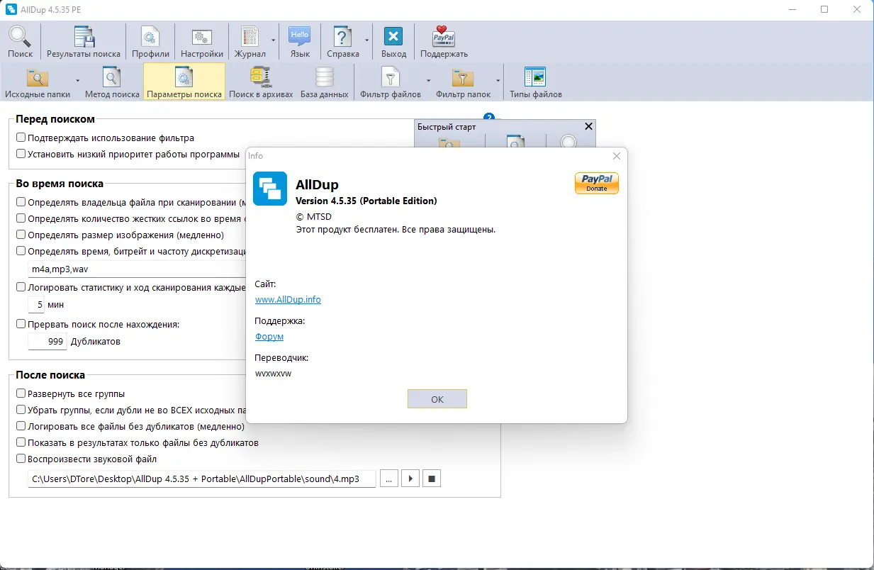 AllDup — это бесплатный инструмент для поиска и удаления дубликатов файлов на вашем компьютере. Он обладает мощным алгоритмом быстрого поиска, позволяющим находить копии любых типов файлов, включая текстовые документы, изображения, музыку и видео, в кратчайшие сроки.