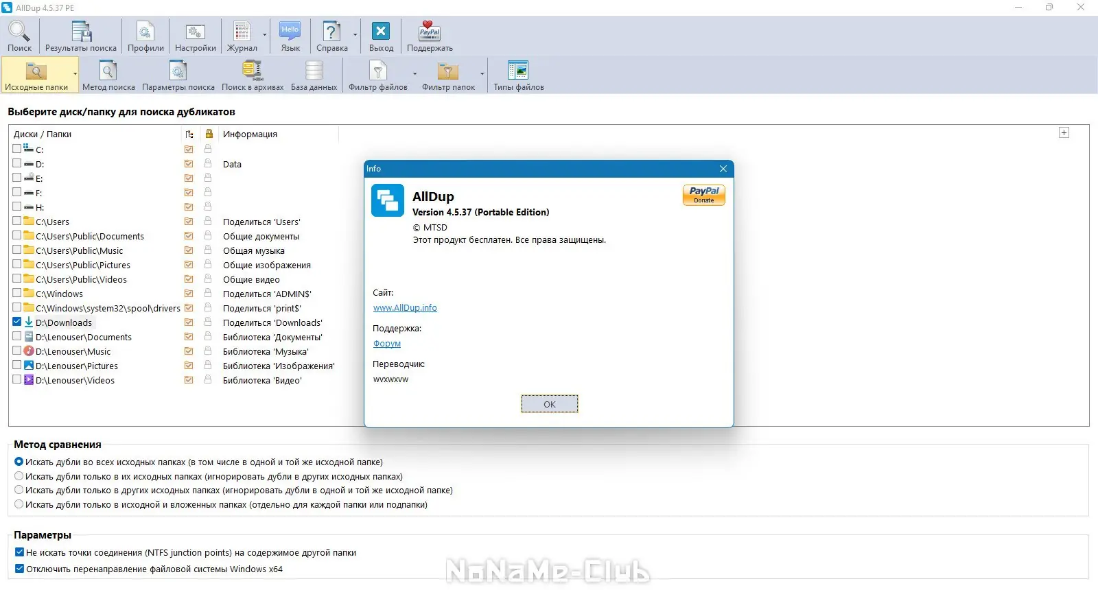 AllDup — бесплатный инструмент для поиска и удаления дубликатов файлов на вашем компьютере, который поможет навести порядок на дисках и освободить дополнительное пространство. Программа поддерживает работу в системах Windows 7, 8/8.1, 10, 11 для платформ x32 и x64 Bit и отличается высокой скоростью и точностью поиска.
