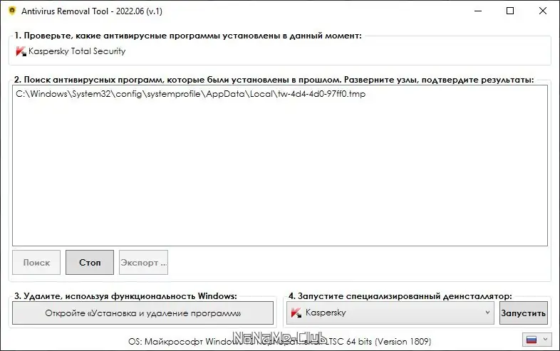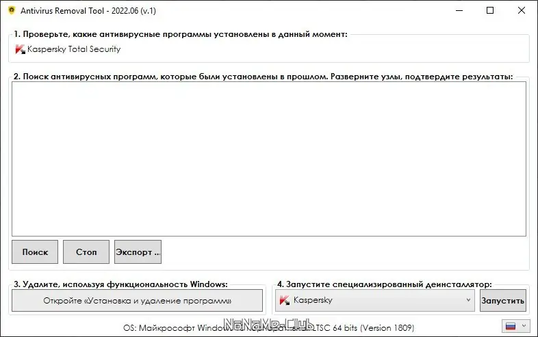 - Загрузите файл установки Antivirus Removal Tool с официального сайта или другого надёжного источника.