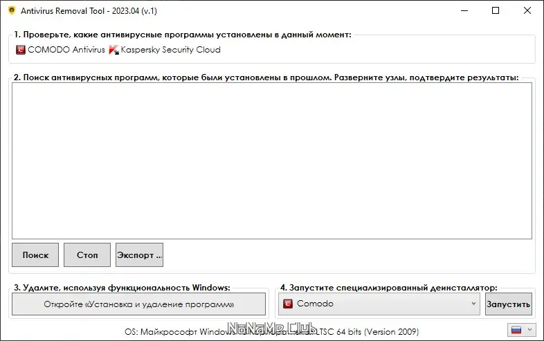 Antivirus Removal Tool — это портативный набор официальных утилит, предназначенных для удаления различных антивирусных программ. В комплект входит удобная графическая оболочка, которая автоматически определяет установленный антивирус и предлагает выбрать соответствующую утилиту удаления. Также программа позволяет просканировать систему на наличие следов удалённых антивирусов для выполнения дополнительной очистки с использованием официальных деинсталляторов.