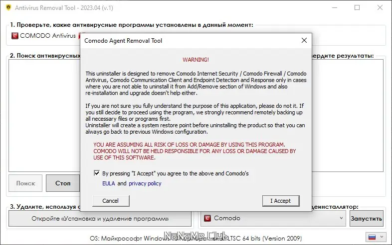 - Следовать подсказкам графической оболочки для определения и удаления выбранного антивируса.