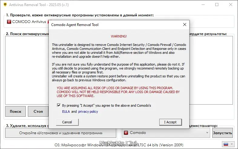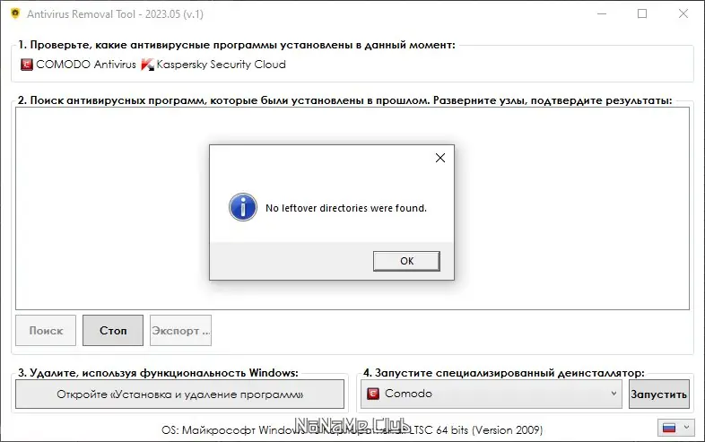 Antivirus Removal Tool — это портативный набор официальных утилит для эффективного удаления антивирусных программ с компьютеров под управлением Windows 7, 8/8.1, 10 и 11. Программа обеспечивает быстрое и безопасное удаление большинства популярных антивирусов, позволяя избежать проблем, связанных с остатками удалённых программ.