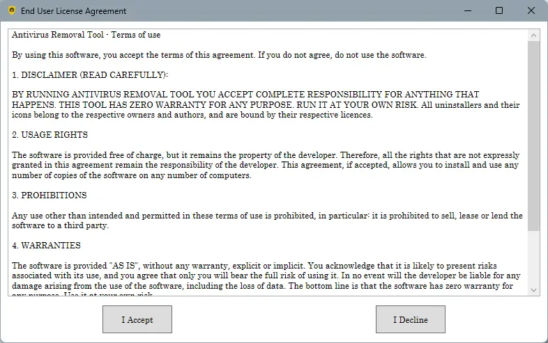 - Запустите файл Antivirus Removal Tool.exe от имени администратора.