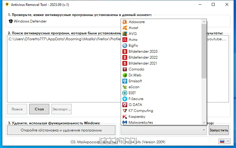 - Следуйте подсказкам для определения и удаления вашего антивируса