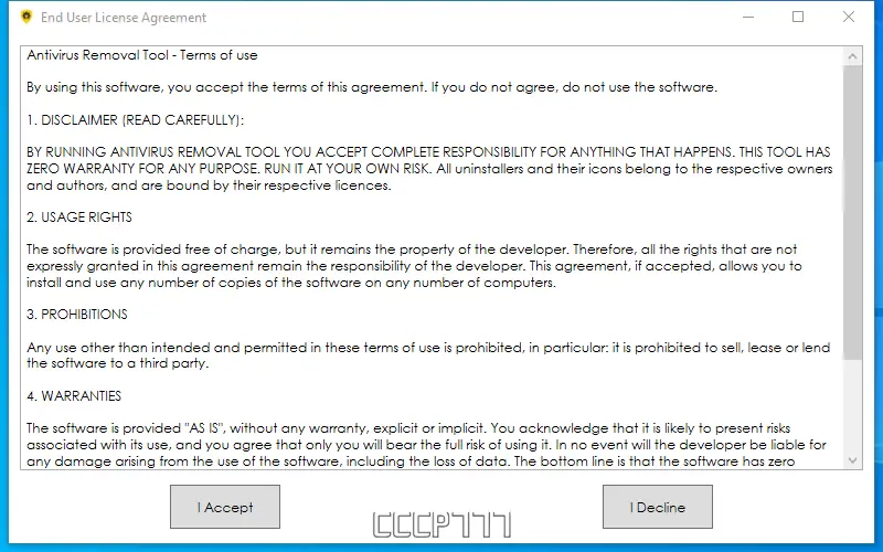 - Запустите утилиту Antivirus Removal Tool, придерживаясь инструкций на экране