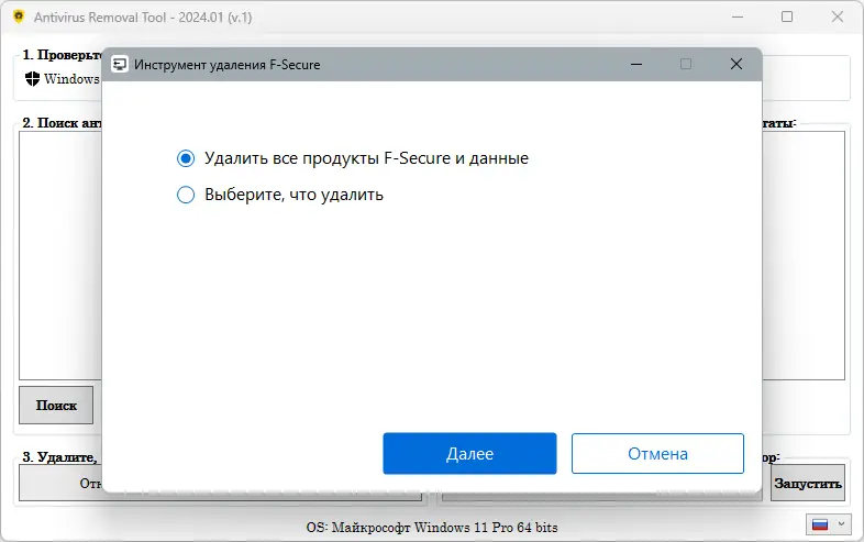 - Поддержка официальных утилит для удаления 28 популярных антивирусных решений.