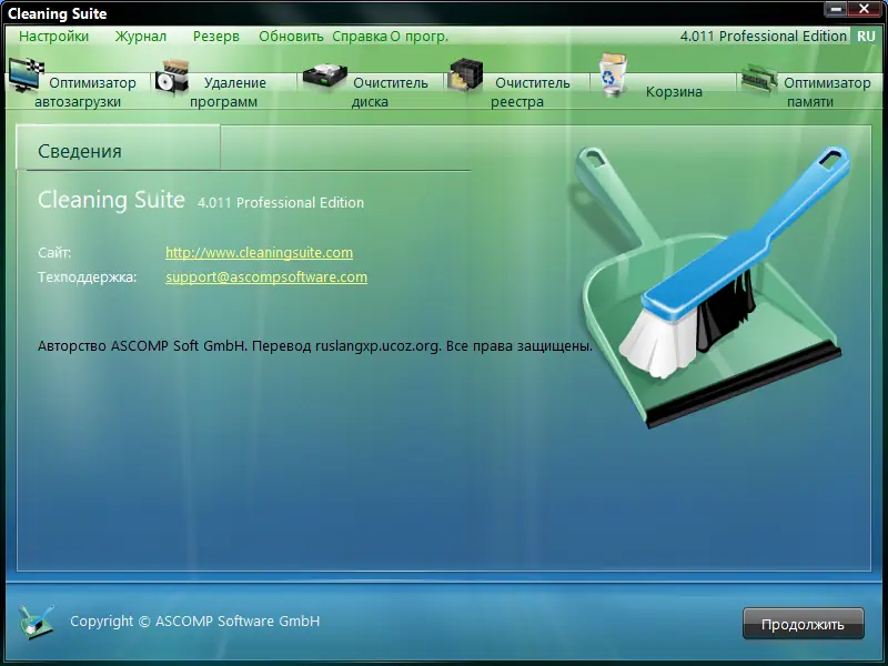 ASCOMP Cleaning Suite — программа для комплексной очистки системы и настройки Windows, включающая эффективные инструменты для оптимизации работы ПК, повышения его скорости и освобождения места на жестком диске.