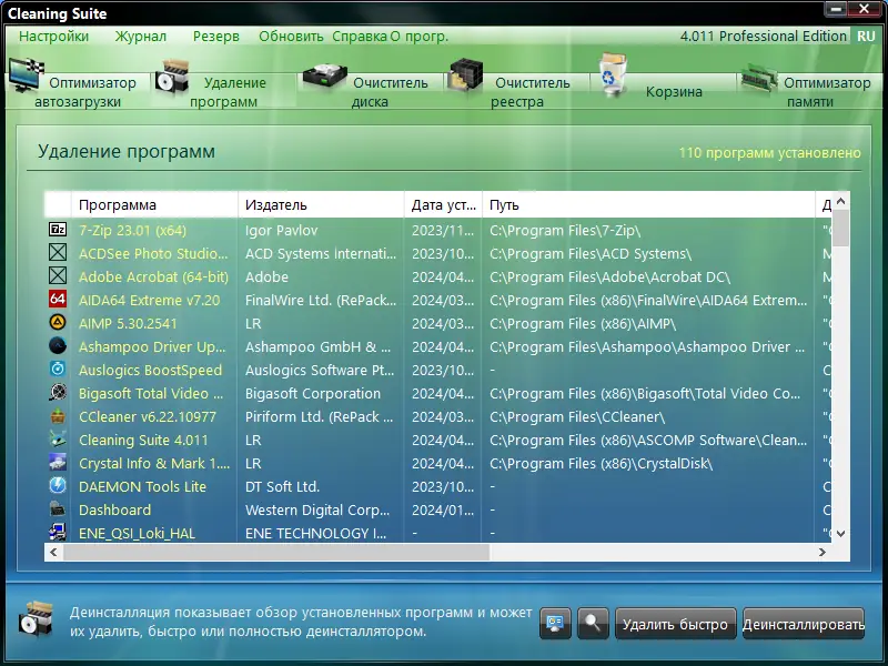 - Множество инструментов для комплексной очистки и оптимизации