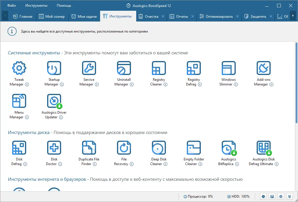 - Широкий функционал, включающий очистку, дефрагментацию, восстановление и настройку системы.