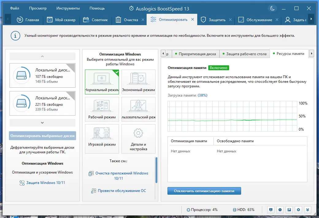 Программа предлагает широкие возможности для обслуживания и ускорения системы, что делает её незаменимым инструментом для пользователей, желающих повысить эффективность работы ПК.