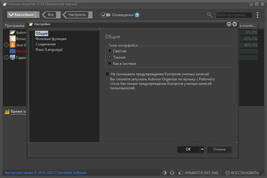 - После завершения установки запустить Autorun Organizer и настроить параметры автозагрузки по необходимости.